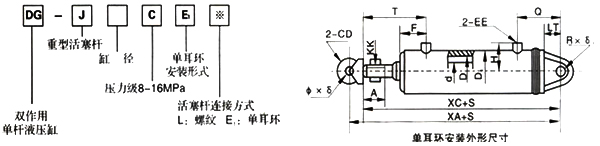 L-活塞桿毗連體例代號:L=羅紋毗連;E=耳飾毗連